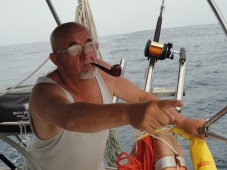stories of this part of the journey. I cannot, without mentioning Roger, a small sea dog that was triumphal overture. Our biggest challenge was the swordfish heavy 27 kilograms, we caught the day before arrival in Galapagos. This brilliant story began unexpectedly with sharp rattle sound of