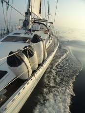 unpleasant stench and a message “see you soon”. We did not suspect that we would have breakfast and early morning coffee to drink without our friends on board, so we have covered stairs and the entire backside with all available fenders in the hope to stop their climbing aboard. It was a new scenario with shabby rules of the game, but also with clever solutions that