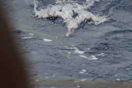 zabacivali u more u nadi da ćemo do kraja ipak ostvariti naš san o tuni “stokilašici”. I tako, pelazeći 124 meridijan, bili smo sve bliže završnoj liniji i “ludilu” koje nas je snašlo tri dana prije uplovljenja u French Polineziju. Novi nagovještaj jakih udara vjetra do 35 čvorova u sekciji “H”, kojom smo se kretali, nisu nas toliko uznemirili, koliko nas je uzbudio prodoran zvuk najlona. U posjet nam je stigla, ni manje ni više, nego draga nam gošća, tuna.