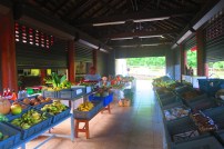 Taioha’e je vrlo simpatičan i miran gradić smješten u podnožju visokih planina.   S izrazito francuskim ambijentom, elegantno se pruža duž sunčane obale u obliku polumjeseca.  Krase ga ljubazno stanovništvo, raznoliki pejzaži i tropsko cvijeće koje cvjeta posvuda.  Središte grada bilo nam je lako istražiti pješice jer je sve nekako bilo na dohvat ruke, banka, pošta, trgovine i umjetnički centri.  Iz tog razloga željeli smo krenuti što prije kako bi izbjegli vručinu-ubicu stoga smo  prvo otišli na market, odmah preko puta pristaništa, koji se osim nedjelje otvara svakim danom u šest sati u jutro i zatvara oko tri popodne. Većina ljudi na tržnici, prodavali su razno voće i povrće koje raste u njihovim dvorištima. Bilo je tu svega, od vanilije, đumbira, manga do različitog cvjetnog grmlja.  Najveće kolekcije zanatskih proizvoda od drva i kamena među otocima Marquesane, nalaze se upravo ovde na Nuku Hivi, gdje su komadi sandalovine, ružinog drveta i vulkanske stijene, pretvorene u prava umjetnička djela.  Polinezijska tkanina s puno cvjetnih dekora za izradu saronga, haljina i zavjesa, također je bila dijelom šarenila gradske ponude.   Na svakom koraku sretali smo grupe žena u izradi tradicionalnih košara i zdjelica od palminog lisca i kokosovog oraha koje se, izmedju ostalog koriste za serviranje jela.  Mirisi tune s kokosovim mlijekom, divlja svinja kuhana u polinezijskoj pećnici i druga jela sa žara, ne  samo da su opijali i izazivali vibracije u stomaku, već su u punom smislu riječi oslikavali market onakvim kakav on zaista treba da bude.