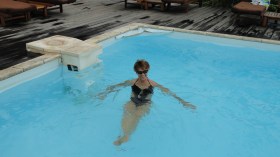 ride with a scooter, let alone a bus, so I cheerfully suggested we walk that few kilometers to the restaurant and then hopelessly added …… “maybe another time, I mean”. Peter would rather lie in the arms of Cori’s crocodile, than walk in such deadly heat. Shortly after, we returned to the ARC’s cabin, in which we called the hotel and ordered a “Jeep” to pick us up.
