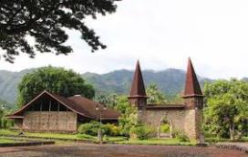 realized that Taioha’e is a city of interesting stories. Toward one such story, we already set off the next moment. Namely, in the Valley of the Teau, at a distance of fifteen minutes of walking from the market, is the Cathedral of Notre Dame. It was erected in the sacred place of ancient Marqueans and built of wood and stones brought from the six inhabited islands of the archipelago. This fairytale structure consists of two bell towers connected by a wall that is used as