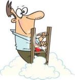 when heavy rain it simply coming down on us. In vain we tried to take shelter in a cafe full of people. It seemed like it was going to be raining forever, so we decided to go back to the pile of groceries that remained lying near the ladders. Actually, we did not care any more cause we were soaked to bare skin. The clothes on us had stuck to us like foil around sandwiches, and we looked like soggy rats. We were no longer sure, whether tears ran down our faces of laughter or drops of rain. Anyway, Peter climbed down to the dingy, while I had handed him down the bags of food with a rope. What are Romeo and Juliet in comparison