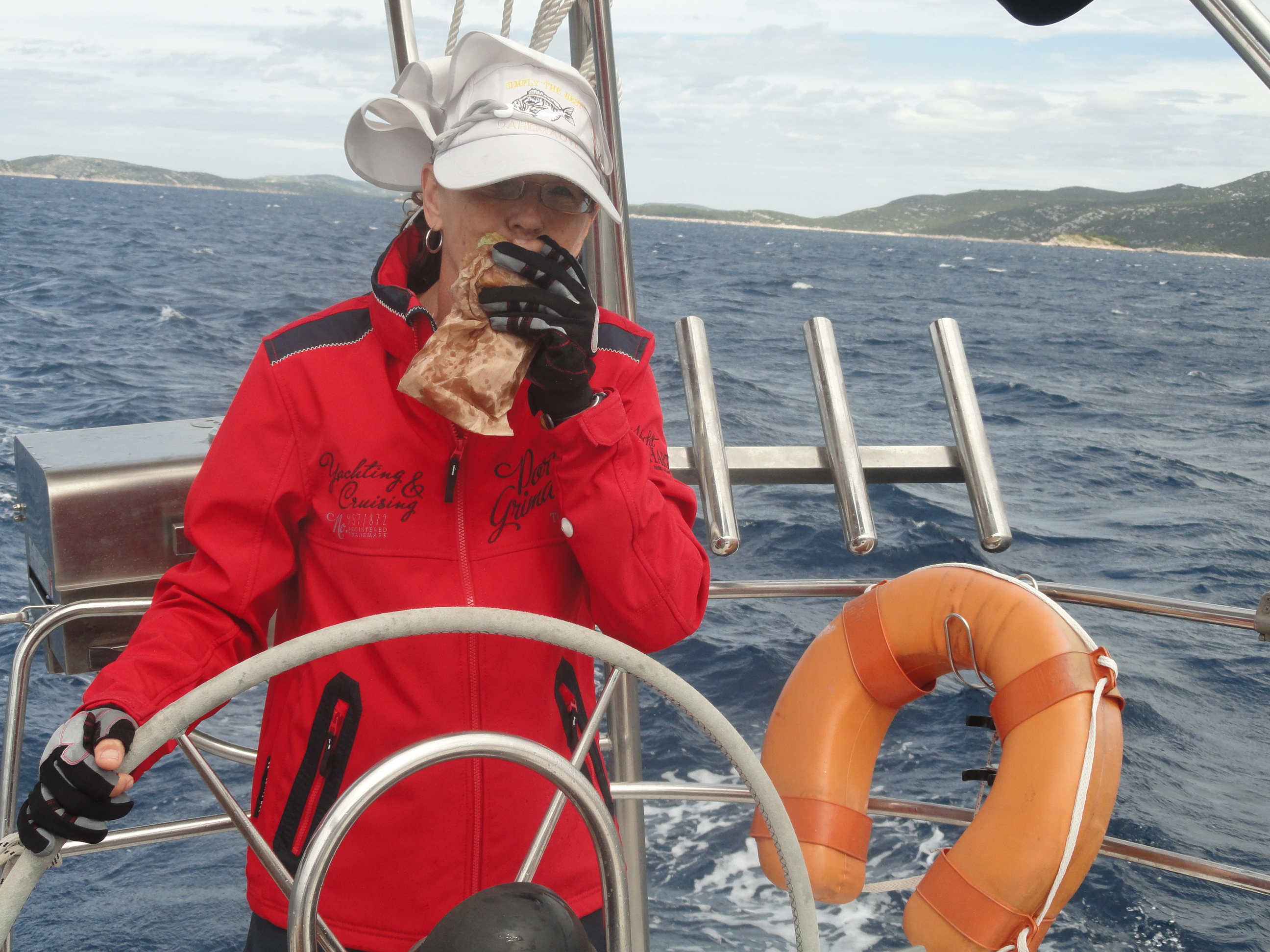 Napuštajući Brgulj slijedećeg jutra, po udarima vjetra, dalo se naslutiti da će se naš dan po mnogočemu razlikovati od prethodnih i da će biti pun aktivnosti na brodu. Prije Prolaza Maknare raširili smo jedra i pripremili se za jedrenje. Vjetar i more su bili u pojačanju u odnosu na prethodni dan. Valovi koji su se razbijali o pramac broda, zvizduk vjetra i snazni udari pramca o površinu mora podsijećali su na realnost o kojoj smo sanjali od samog početka putovanja. Voda nas je zapljuskivala sa svih strana. Hvatali smo vjetar jacine 30 cvorova, dok je more bilo 3-4. Meermowe je pod pritiskom vjetra, svojim bokom ležao na moru i punim jedrima snažno rezao valove. Pravo uzivanje.