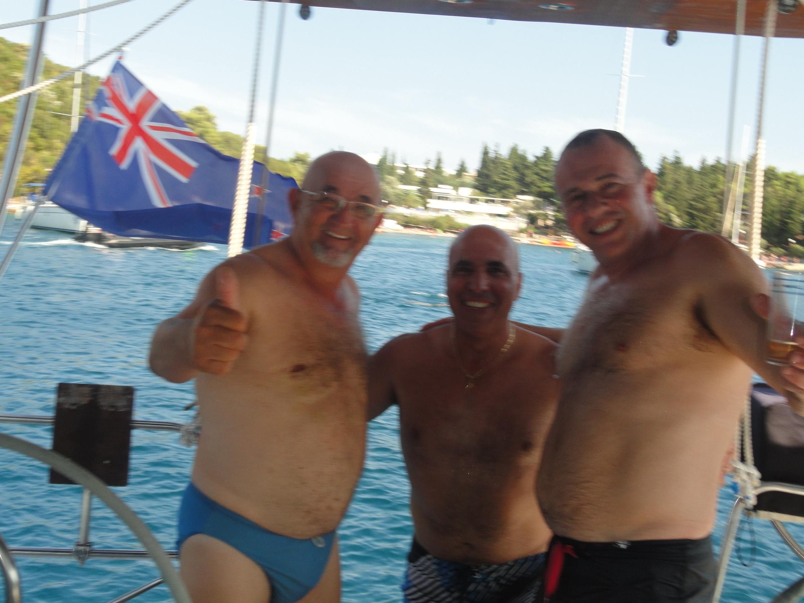 pustinjskog pijeska od čega su svi konopi, jedra i cijela paluba bili žučkasto smeđi. Putovanje je bilo vrlo ugodno bez velikih naprezanja. Nije bilo vremena za dosadu, uvijek smo bili okupirani nekim aktivnostima od kojih nam je ribolov bio broj jedan. Čekajući da nešto zagrize, sunčali smo se i tuširali morskom vodom neobično toplom za ovo doba godine. Jedini šok koji smo doživili, ali onaj od kojeg smo skakali od sreće, bio je kad nam je u kokpit uskočio veliki Dorado težak 8