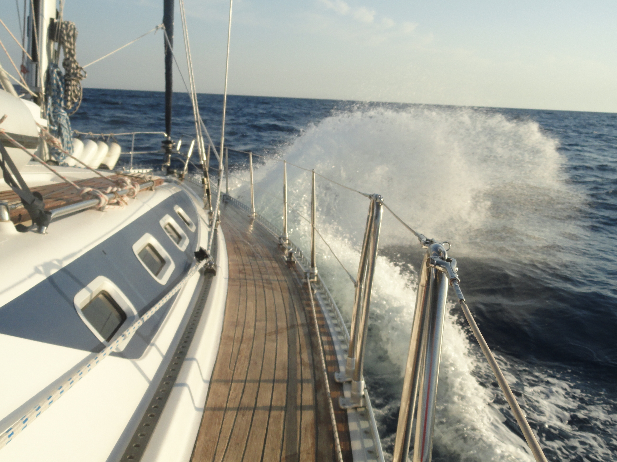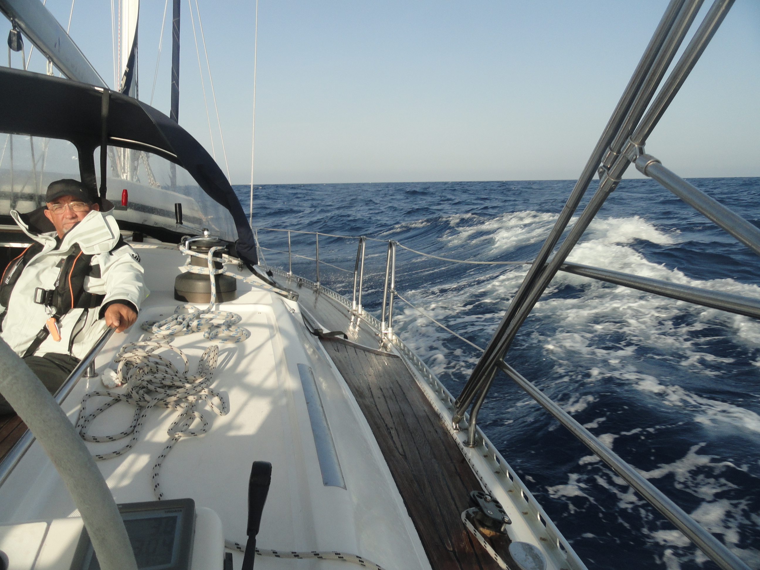 Putovanje do Las Palmasa na otoku Gran Canary pratio je jak vjetar i visoki valovi. Bitangu smo izgubili sa horizonta i jos jednom ostali ustrajni na svom kursu. Meermowe se gotovo idealno probijao kroz valove dosežuci brzinu i do devet čvorova. Ako ovako nastavimo, razmišljali smo, u Las Palmas ćemo uploviti za manje od dvadeset sati. Život je zaista lijep ali ipak, zbog velikog naprezanja jedara pod udarima